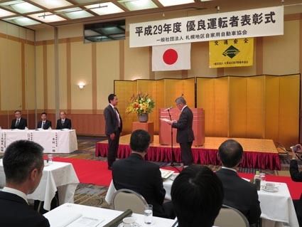札幌地区自家用自動車協会(松原正和会長)は「平成29年度優良運転者表彰式」を市内のホテルで開催した。無事故無違反の3年表彰者から40年までの優良ドライバー合計114人を顕彰した。 受賞したドライバーは、全国自家用自動車協会長表彰として無事...