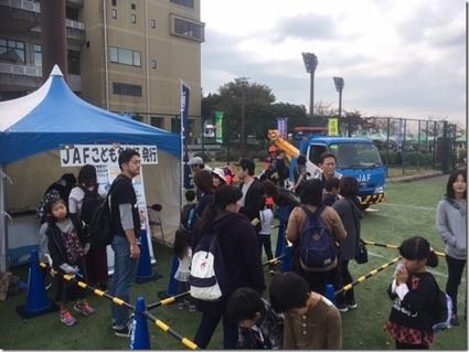 【水戸】日本自動車連盟(JAF)茨城支部(嶋津孝一郎支部長)は3、4日の連休にかけて県内各地の催事に交通安全ブースを出展し、幅広い年齢層に交通安全を呼びかけた。 3日の文化の日は内原消防署で開催された「内原ふれあい祭り」に時速5キロメート...