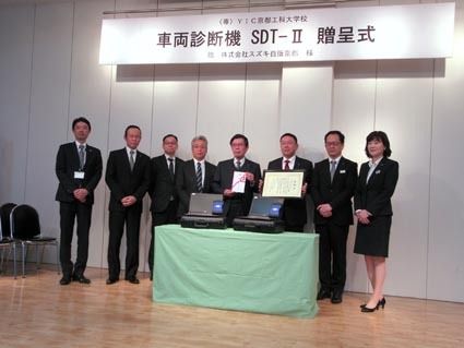 【京都】スズキ自販京都(金塚昭社長)はこのほど、YIC京都工科大学校(杉山征人校長)に車両診断機「SDT―II」を寄贈した。 次世代を担うメカニックの教育に役立ててもらうのが狙い。寄贈式は15日、京都市南区のYICで開いた。 来校した金塚...