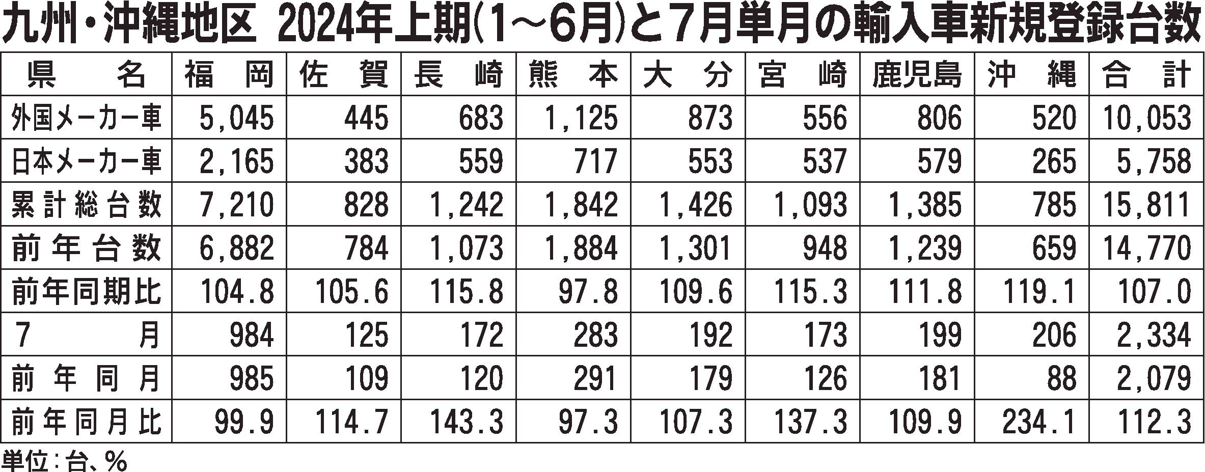九州・沖縄地区、2024年1~6月輸入車登録 3年ぶり前年上回る
