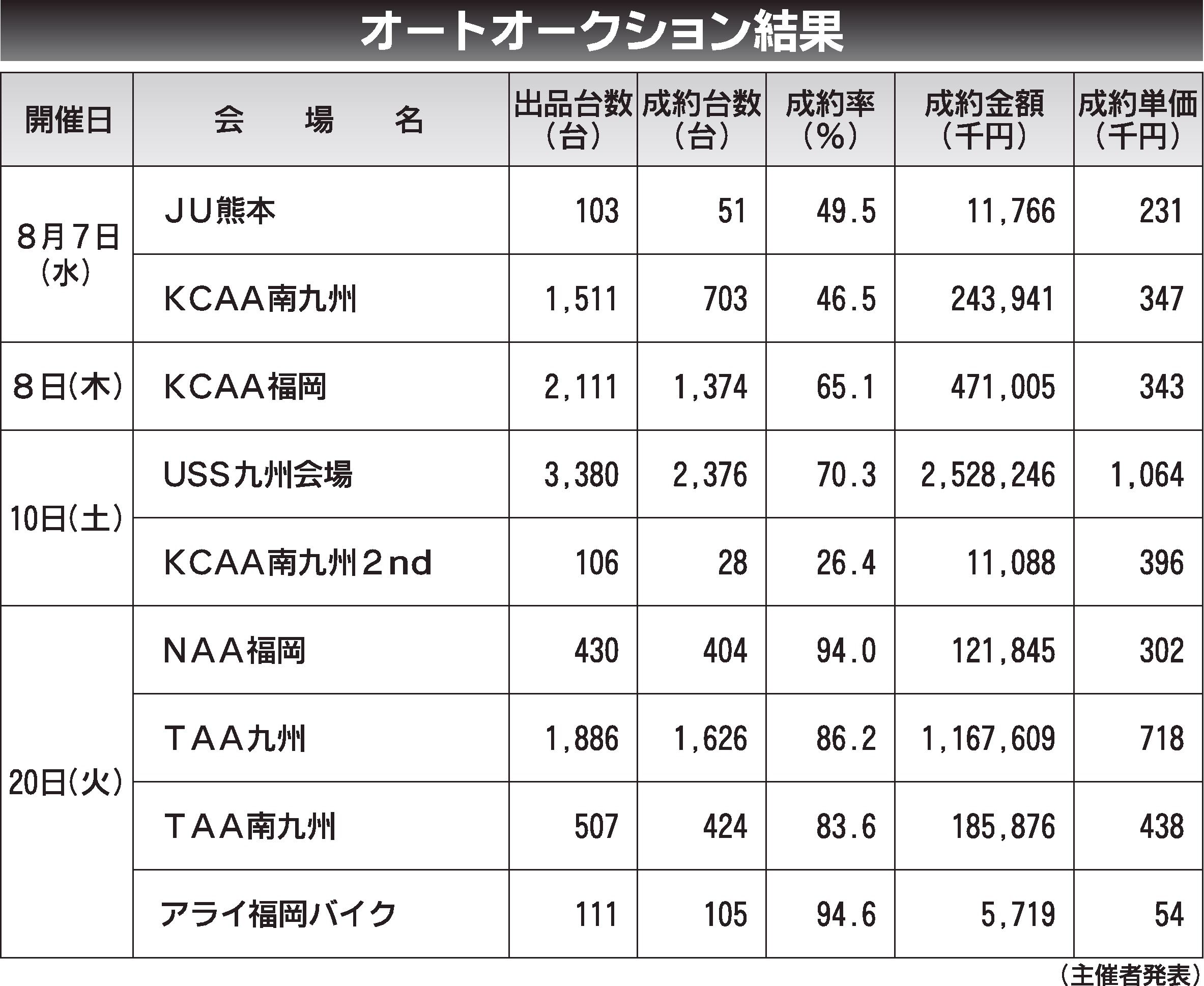 〈オートオークション結果〉九州地区 2024/8/7~20