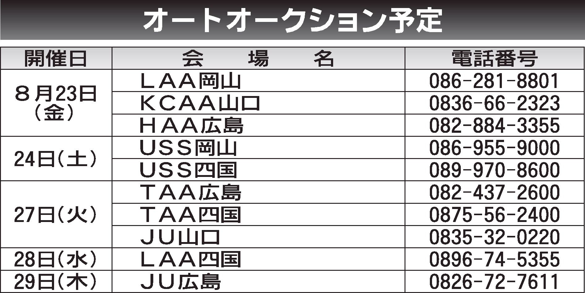 〈オートオークション予定〉中四国地区 2024/8/23~29