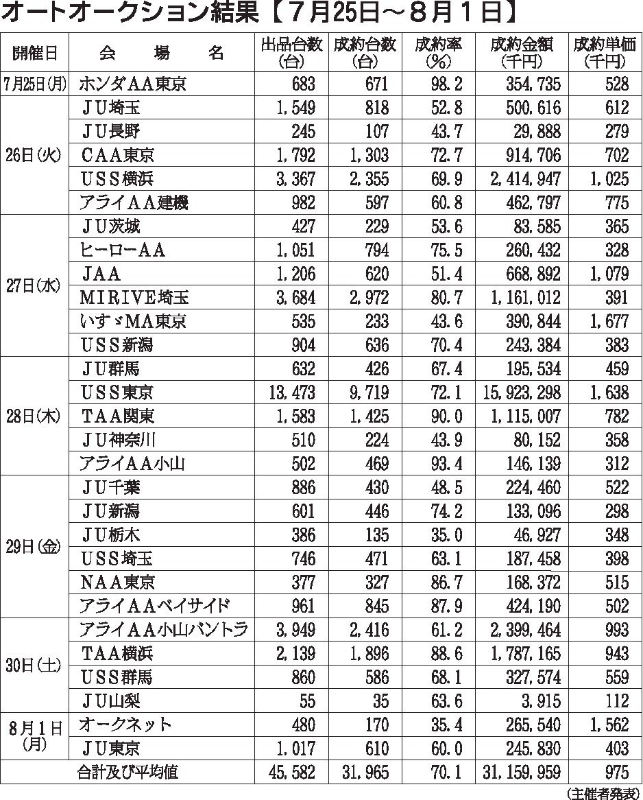 〈オートオークション結果〉首都圏 2022/7/25~8/1