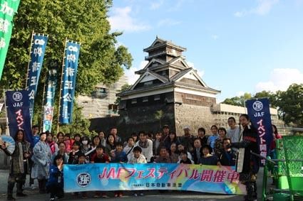 【熊本】日本自動車連盟(JAF)九州本部(金野誠本部長)はこのほど、熊本城下にある城彩苑(熊本市中央区)で「JAFフェスティバル2017九州 熊本復興応援!」を開催した。熊本城おもてなし武将隊による熊本城ツアーに76人、「湧々座ものがたり...
