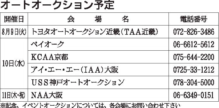 〈オートオークション予定〉近畿地区 2022/8/9~11