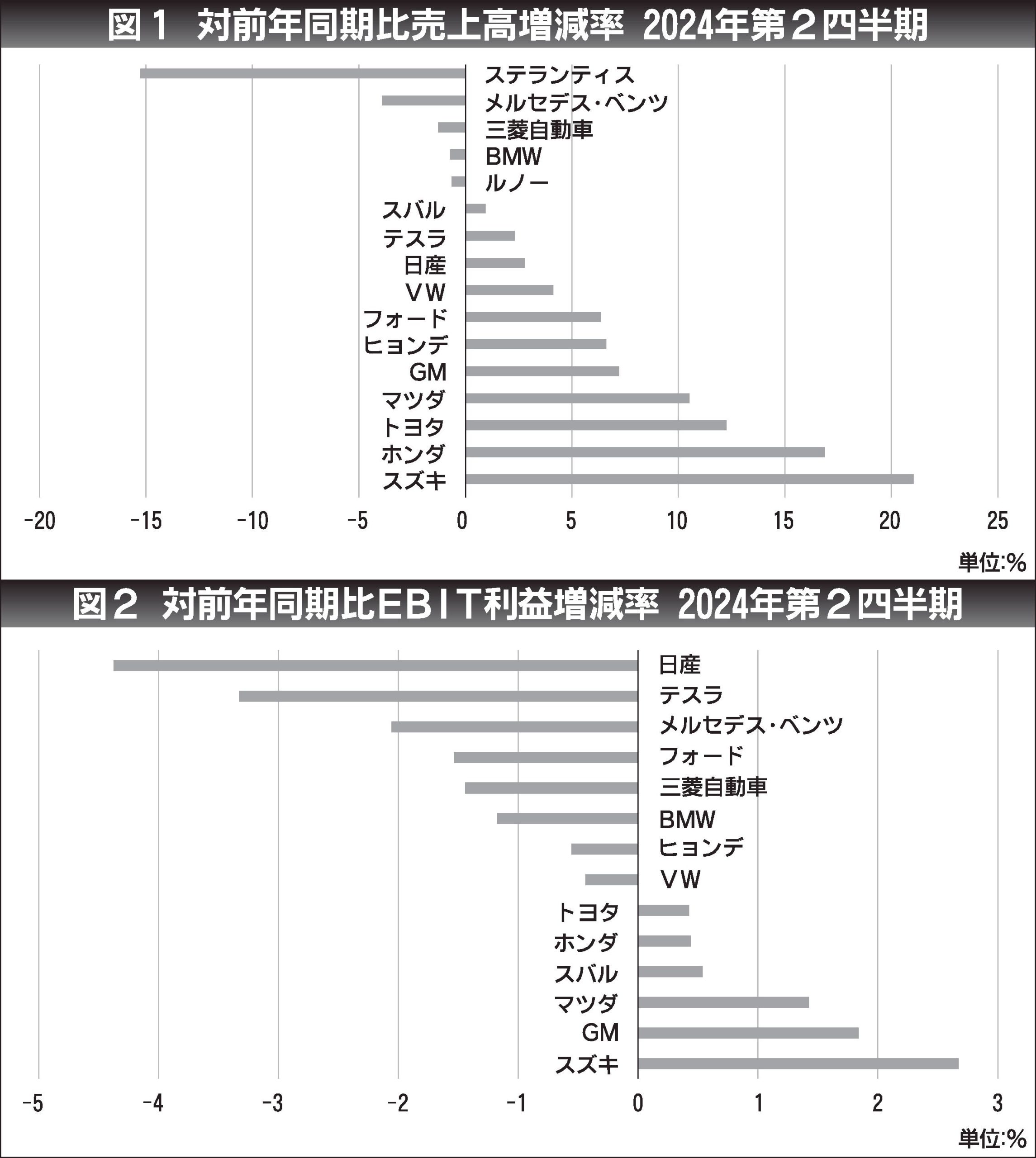 世界の主要自動車メーカー上位16社の2024年4~6月期(日本のメーカーは24年度第1四半期、その他のメーカーは第2四半期)決算が公表された。 期中の自動車販売台数は前年同期比3.7%減の1509万台。前年同期比で販売台数が伸び悩むのは、...