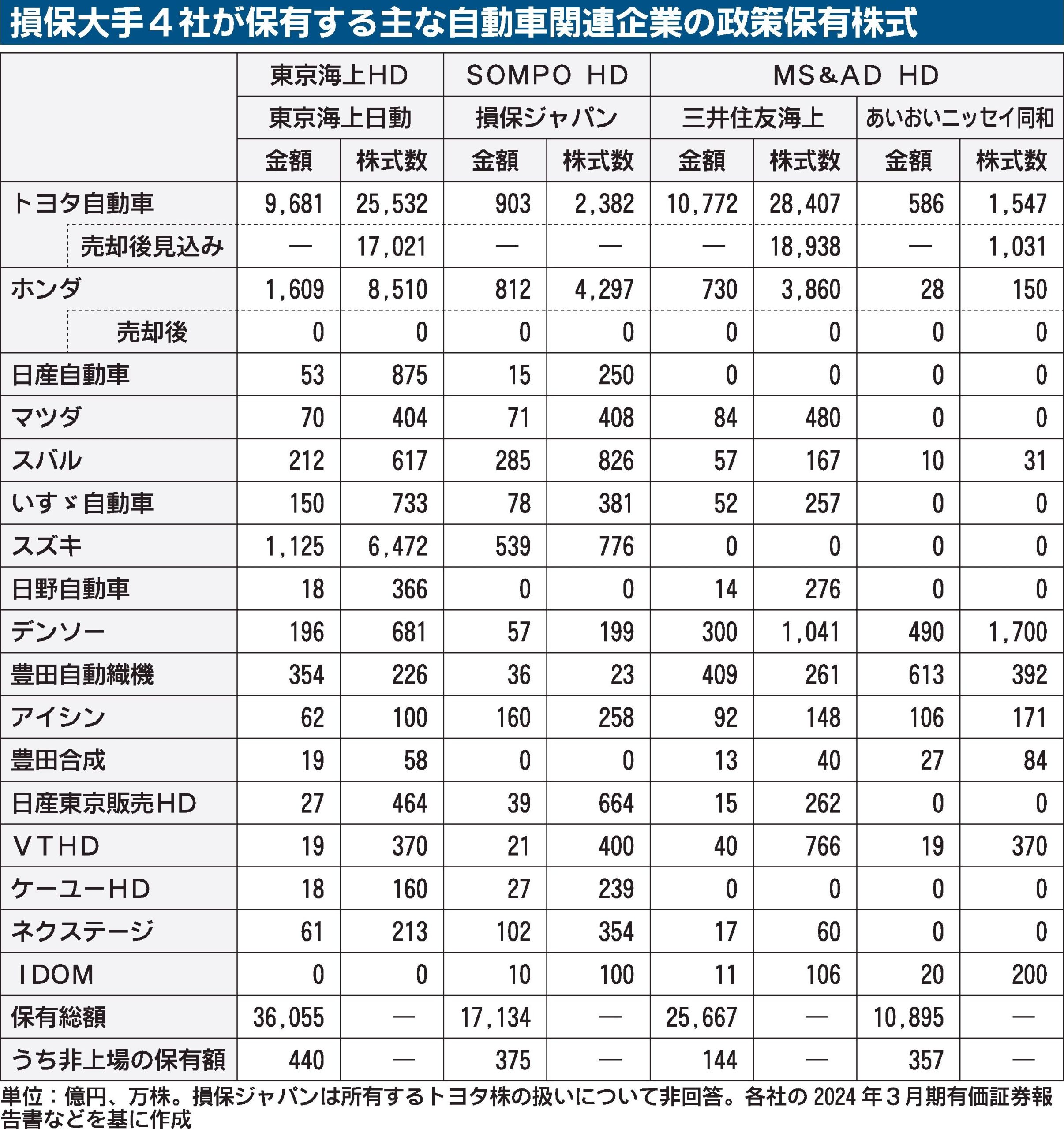 損害保険大手4社と、トヨタ自動車、ホンダが互いに政策保有株の売却に乗り出した。ホンダについては損保4社との資本関係が解消された。背景には損保大手4社の不祥事で、合計9兆円の政策保有株を今後6年程度でゼロにせざるを得なくなったことがある。ト...