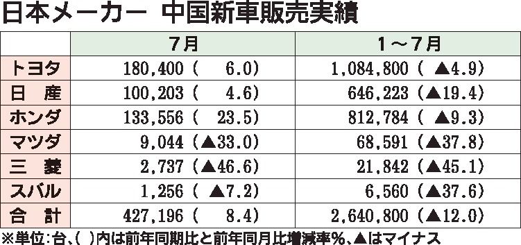 日本の自動車メーカー6社が発表した7月の中国新車販売台数は、合計で前年同月比8・4%増の42万7196台となった。前月に比べて伸び幅は1・0㌽縮小したが、2カ月連続で前年実績を上回った。新型コロナウイルス感染拡大による影響の緩和や半導体供...
