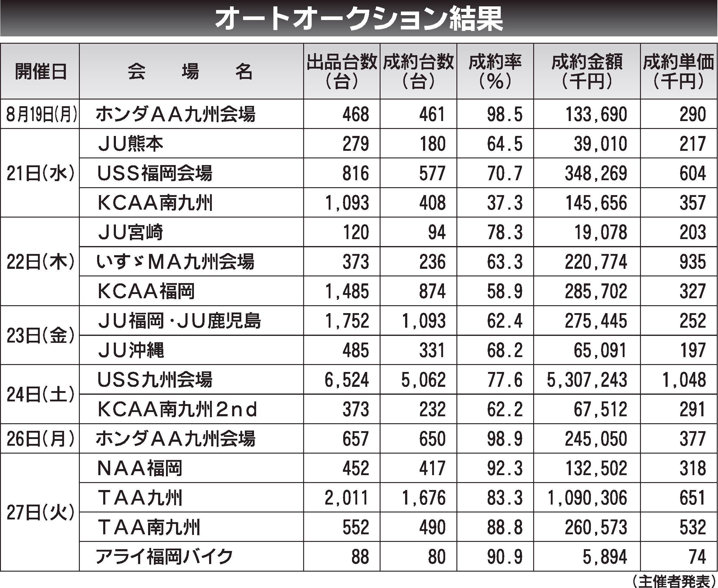 〈オートオークション結果〉九州地区 2024/8/19~27