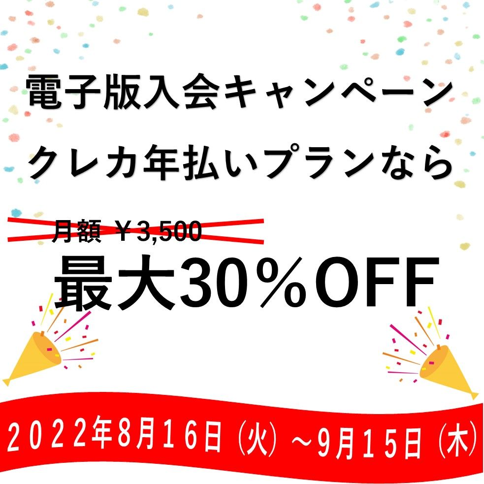クレジットカード年間一括払いプランを新規でお申し込みの方を対象に、通常1IDあたり37,800円(月々3150円相当)のところ、1年目に限り29,400円(月々2450円相当)でご購読可能です。