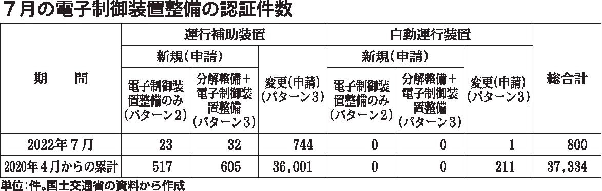 国交省、2022年6月の電子制御装置整備の認証件数は1064件