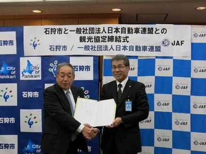 日本自動車連盟(JAF)札幌支部(横井隆支部長)はこのほど、ドライブ旅行の活性化による地域振興やJAF会員のサービス向上を目的に、石狩市(田岡克介市長)と観光協定を締結した。 締結式では札幌支部の真野卓也事務所長と田岡市長が出席し、協定に...