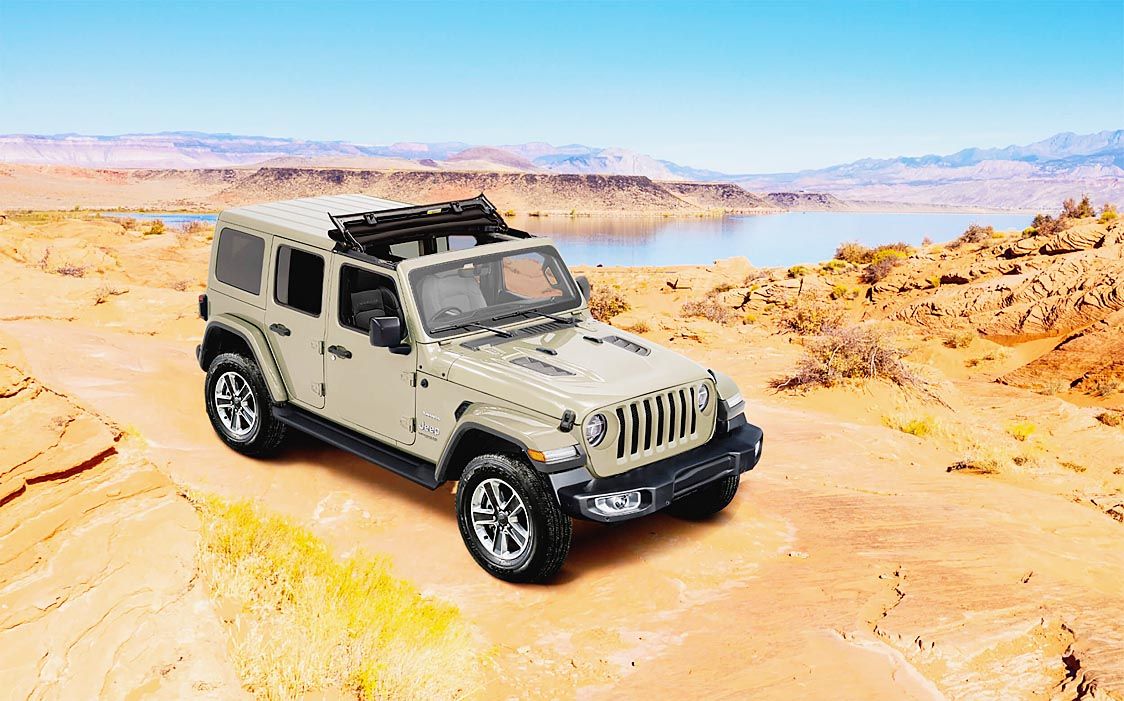 特別仕様車は「アンリミテッドサハラ」グレードがベース。前席上部に付け替え可能な開閉式のソフトトップを採用したほか、標準のハードトップにも装着できるようにした。また、パワートレインも変更しており、カタログモデルにはない排気量3.6リットルのV型6気筒自然吸気エンジンを搭載した。