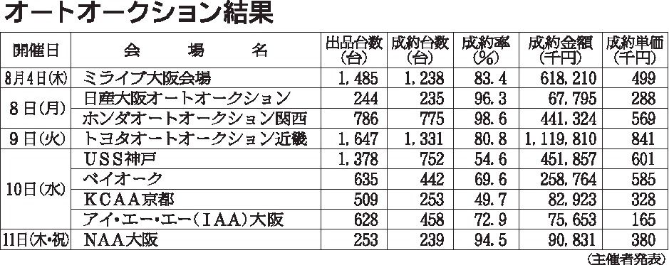 〈オートオークション結果〉近畿地区 2022/8/4~11
