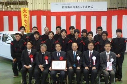 【大分】ダイハツ工業と大分ダイハツ(南泰輔社長)はこのほど、大分市の大分高等技術専門校に、教材用としてエンジン2基を寄贈した。南社長や同校の渡辺正則校長、訓練生16人らが出席し寄贈式を開催。南社長から渡辺校長へ目録を手渡した。 式の席上、...
