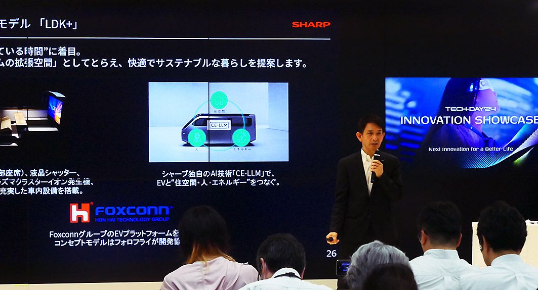 シャープは9月6日、電気自動車(EV)事業への参入を目指す方針を明らかにした。親会社である台湾の鴻海精密工業(フォックスコン)のEVのプラットフォームを活用し、数年後の事業化を目指す。ブランドや販売方法などは未定だが、「シャープ」ブランドで展開する可能性もあるという。コンセプトモデルを開発し、東京国際フォーラム(東京都千代田区)で17、18日に開く技術展示イベント「シャープ テックデー'24 “イノベーション ショーケース”」で披露する。