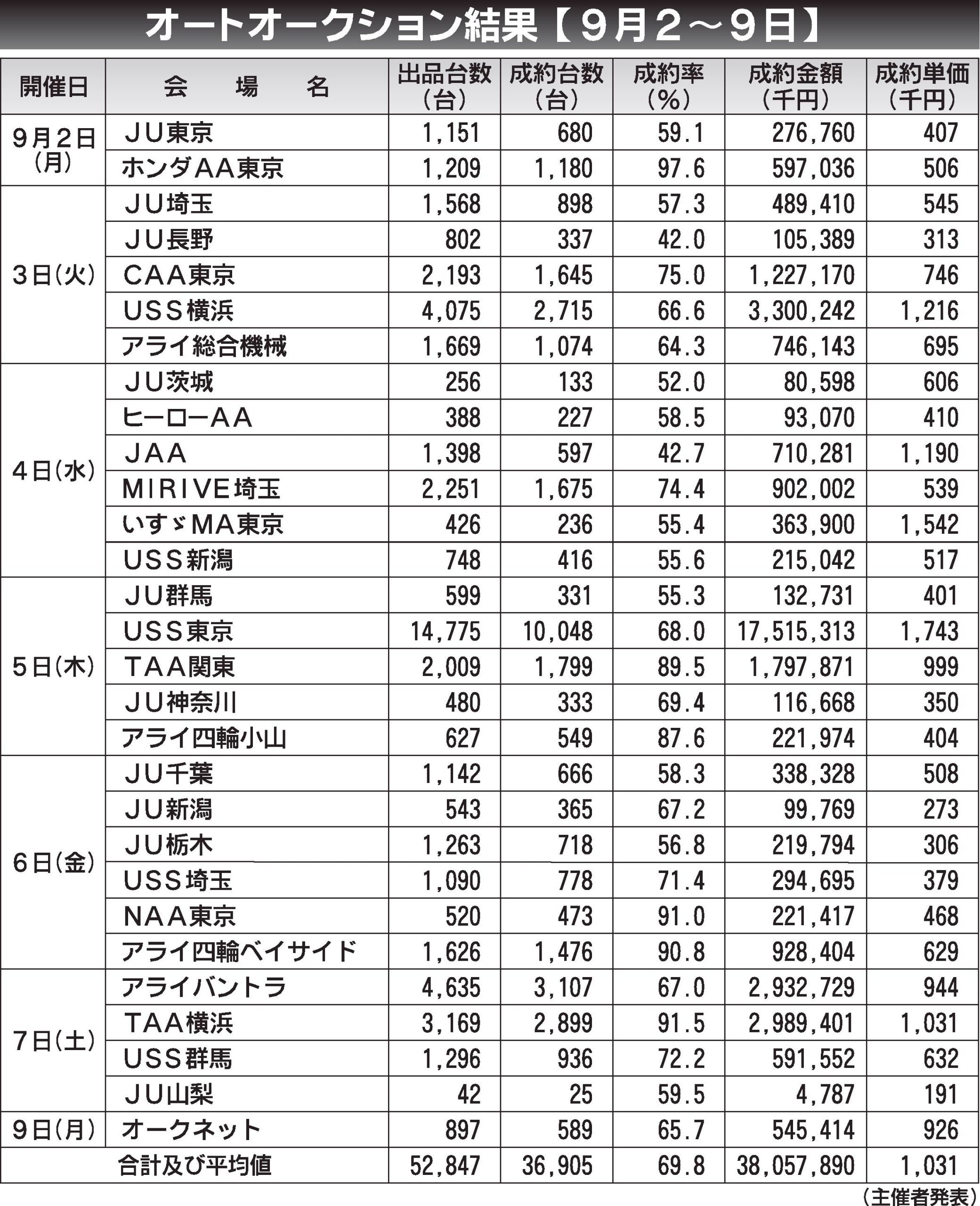 〈オートオークション結果〉首都圏 2024/9/2~9