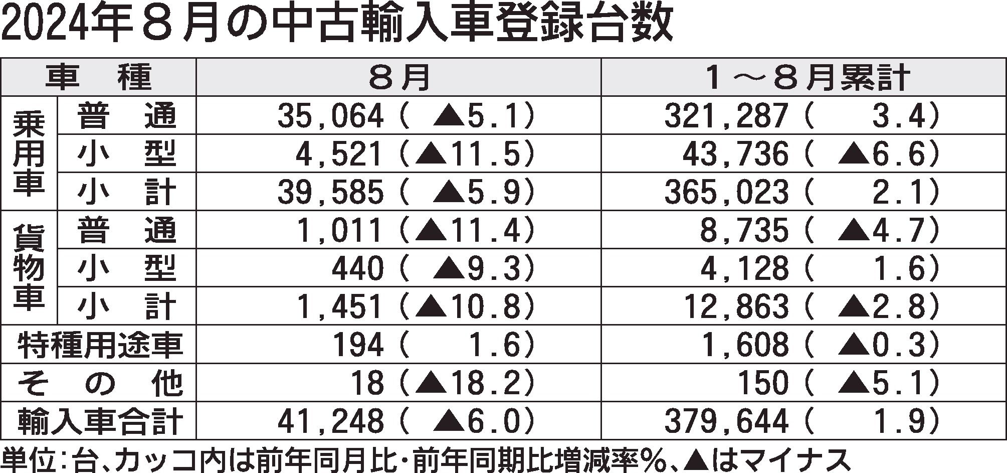 2024年1~6月の中古輸入車登録、前年比2%増の28万8119台
