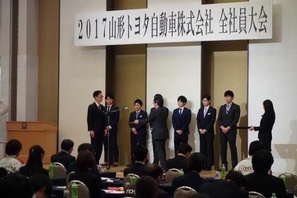 【山形】山形トヨタ(鈴木吉徳社長)は12月20日、山形市で「2017全社員大会」を開催した。役員と社員が出席し、18年の経営方針発表などを行い、全員で理解を深めた。大会では、17年実績で優れた実績を残した店舗と社員を表彰したほか、優秀店舗...