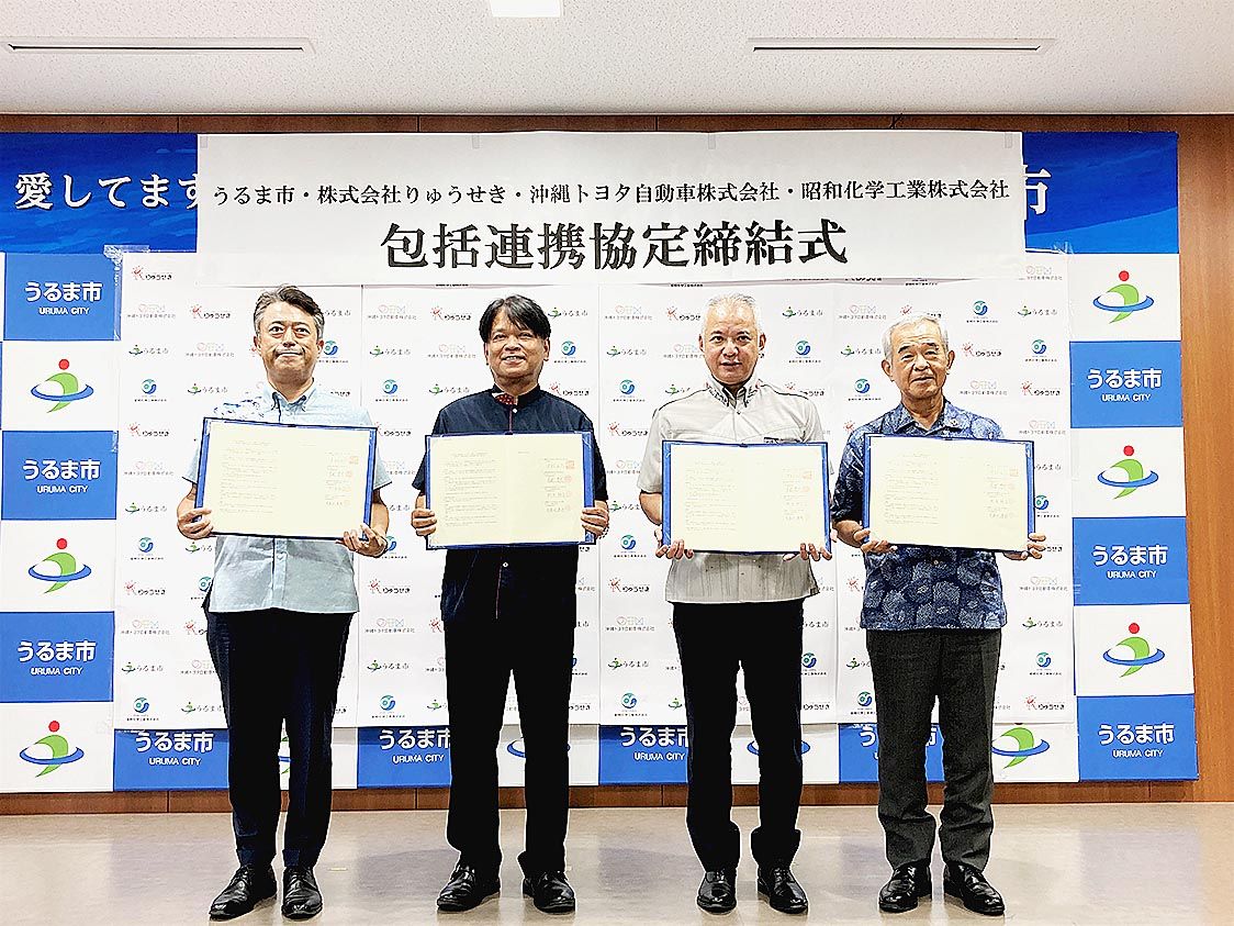 沖縄県うるま市(中村正人市長)と沖縄トヨタ(野原朝昌社長)、りゅうせき(當銘春夫社長)、昭和化学工業(屋嘉比康則社長)は、温室効果ガスの排出を実質ゼロにするカーボンニュートラルの推進を目的とした包括連携協定を締結した。次世代エネルギーとさ...