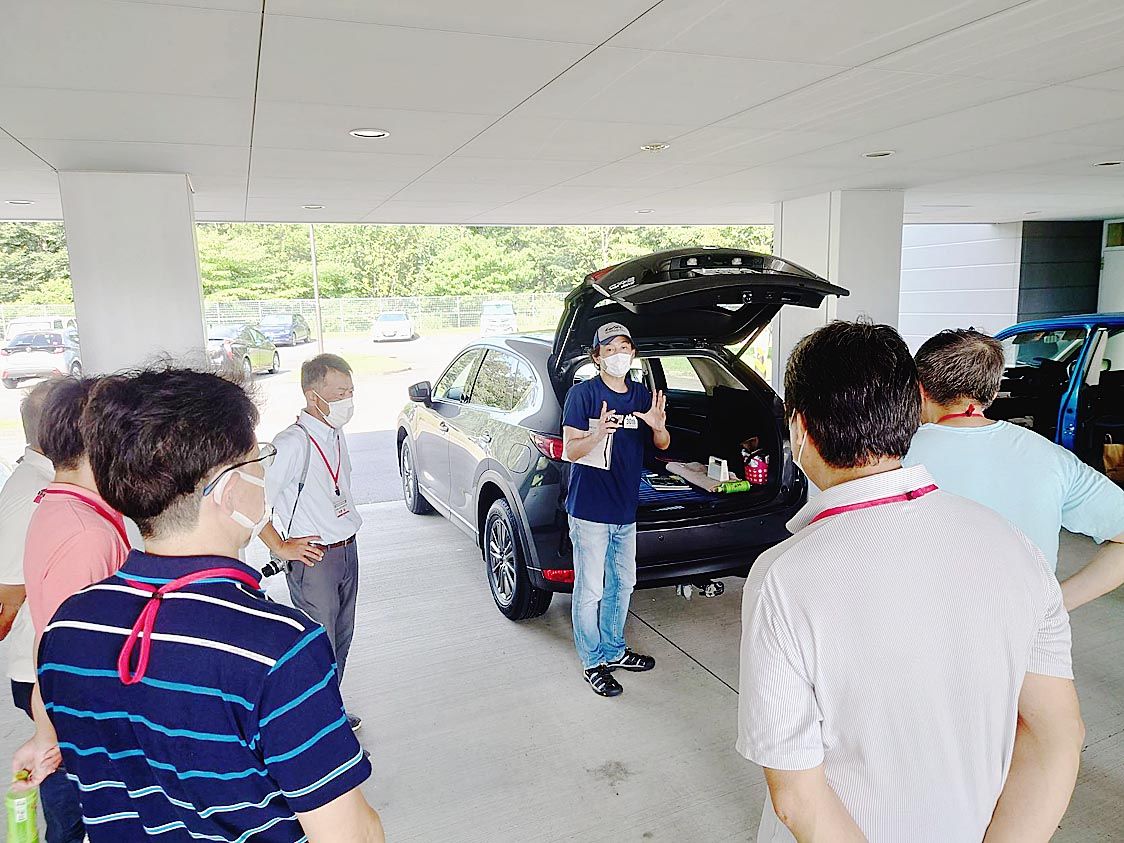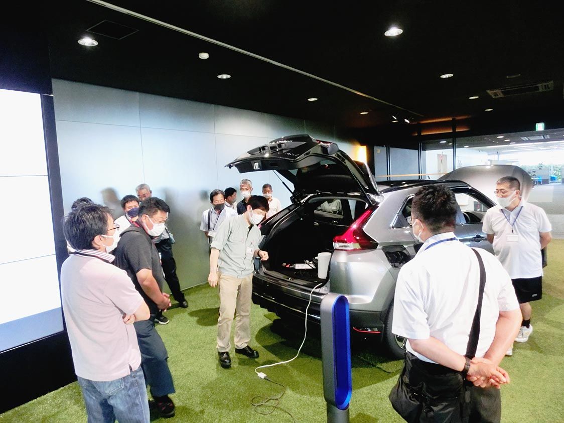 今年度は研修会を3回開催。1回目は7月28日に三菱自動車の岡崎製作所で開いた「持続可能な社会の実現に向けた三菱自動車の取り組み・三菱のPHEVについて」で、電動化技術とプラグインハイブリッド車の給電機能による災害対応などを紹介した。