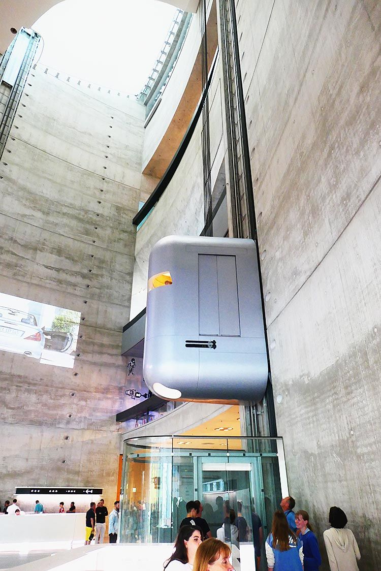 メルセデス・ベンツ博物館の一番の見どころはむろん各種の名車だが、ほかにも魅力は多数ある。特に、建物、展示の空間そのものにも注目し、体感したい。 約48㍍の高さのある館の中央部は、名物ともいえる吹き抜けで、全体を象徴するようだ。まるで近未来...
