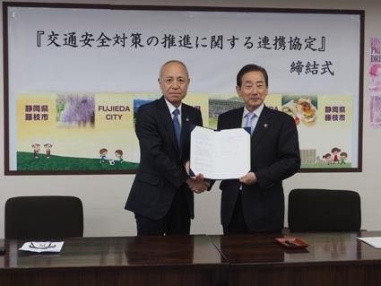 【静岡】あいおいニッセイ同和損害保険と藤枝市はこのほど、「交通安全対策の推進に関する連携協定」を締結した。藤枝市役所で行われた締結式で同社の山名学専務執行役員と北村正平藤枝市長が協定書に署名を行った。同市では「交通安全日本一」に向けた取り...