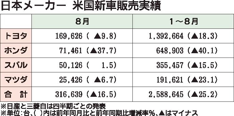 日本の乗用車メーカー4社の8月の米国新車販売台数は、前年同月比16・5%減の31万6639台となり、13カ月連続で減少した。減少幅は7月の同29・3%から縮小したが、半導体不足など部品の供給問題に加え、鉄道網の混乱で新車輸送にも支障が生じ...