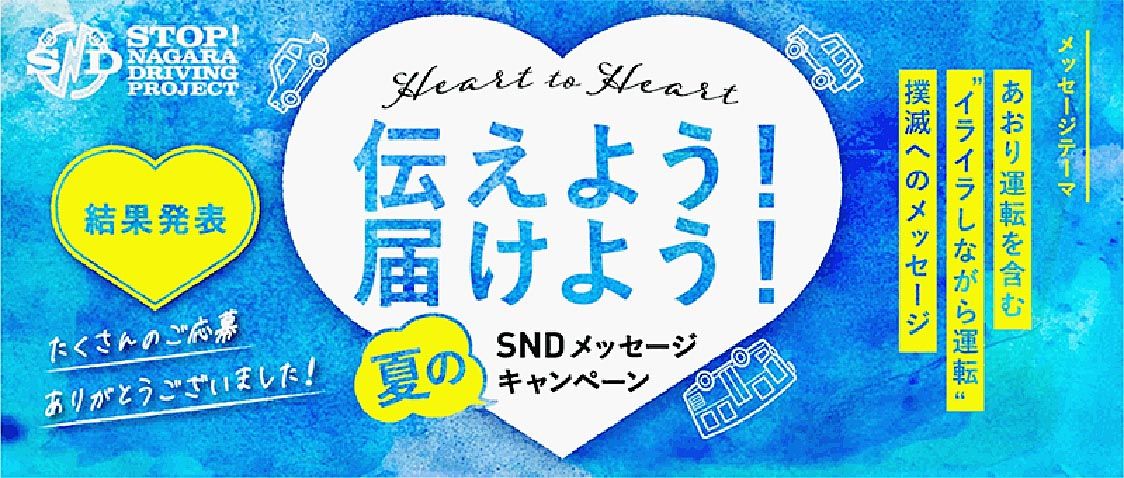 【大阪】西日本高速道路は、高速道路での交通事故につながる「ながら運転」を撲滅するメッセージを募集した「ハート・トゥ・ハート 伝えよう!届けよう!夏のSNDメッセージキャンペーン」=写真=のグランプリ受賞作品を発表した。あおり運転を含む「イ...