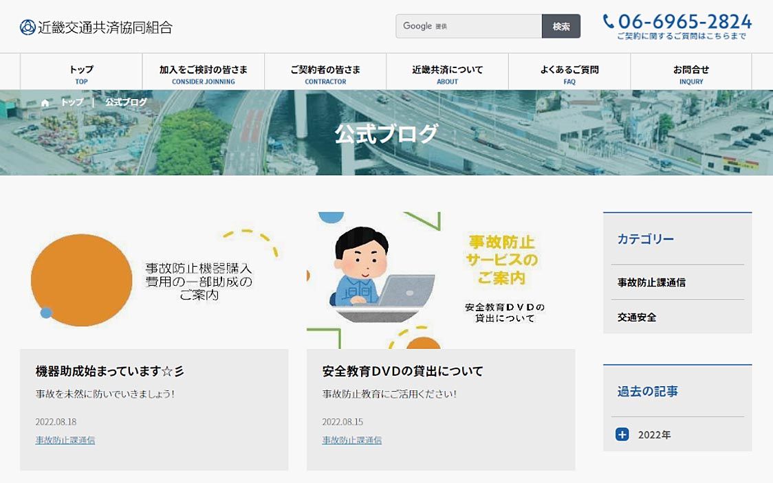 近畿交通共済、ホームページに公式ブログ開設