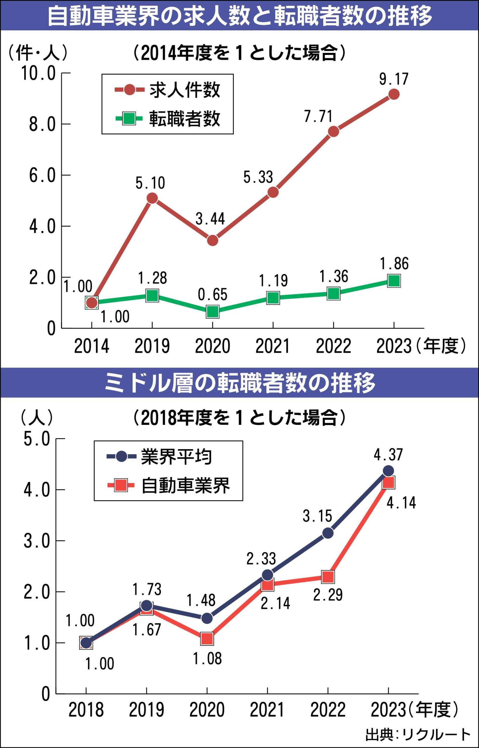 自動車業界の求人は10年間で9倍超に―。次世代車の開発に欠かせないソフトウエアエンジニアの増加などを背景に、自動車業界で中途採用の求人数が増加の一途をたどっている。引き合いの強い若手エンジニアのほか、40~50歳代の転職事例も珍しくなくな...