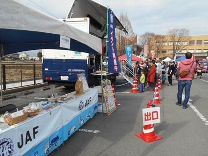【横浜】日本自動車連盟(JAF)神奈川支部(上野健彦支部長)はこのほど、観光協定を締結する大井町(間宮恒行町長)が主催するイベントに出展し交通安全啓発活動を行った。大井町総合体育館駐車場(足柄上郡大井町)で行われた「大井町産業まつり」にシ...