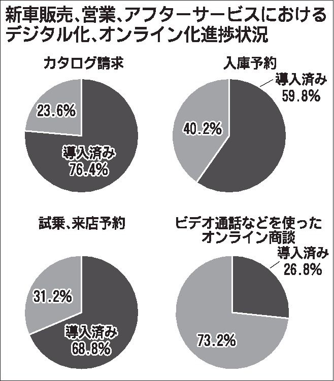 オンライン入庫予約を受け付ける自動車メーカー系新車ディーラーが半数を超えたことが分かった。日刊自動車新聞が新車ディーラーを対象に実施したアンケート調査によると、回答のあったディーラーのうち、59・8%がオンライン入庫予約を導入していると回...