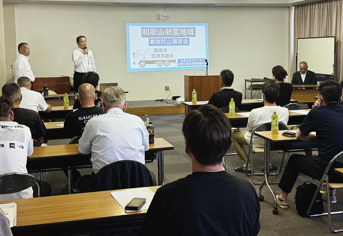 【和歌山】近畿交通共済協同組合(岡田博理事長)は、新宮自動車会館(新宮市)で「令和6年度和歌山新宮地域事故防止講習会」を開催した。組合員22人が参加した。 同講習会は7日に実施した。冒頭、和田耕司副理事長が「今年は梅雨明け以来、猛暑が続い...