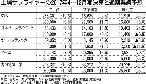 【上場サプライヤーの2017年4~12月期決算と通期業績予想】