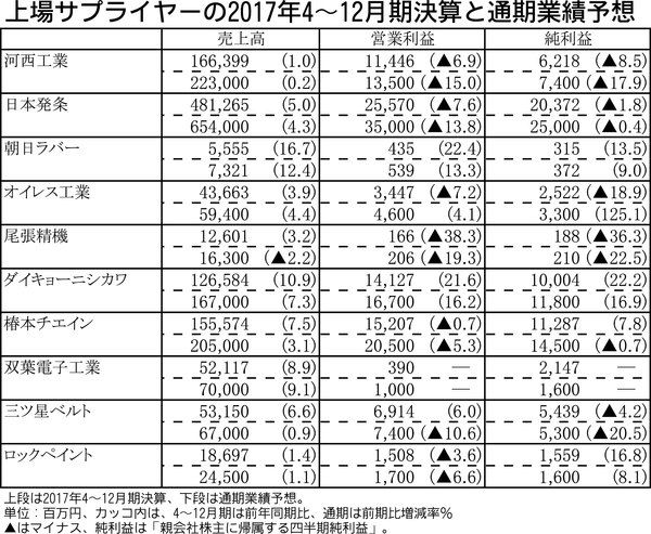 【上場サプライヤーの2017年4~12月期決算と通期業績予想】