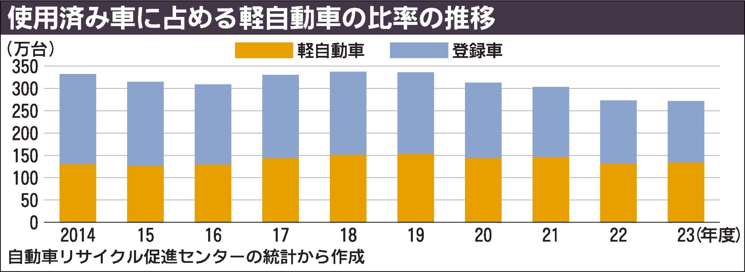 〈ターゲット2030 持続可能な未来へ〉使用済み車、軽比率拡大 低い部品単価 売上高で見劣り