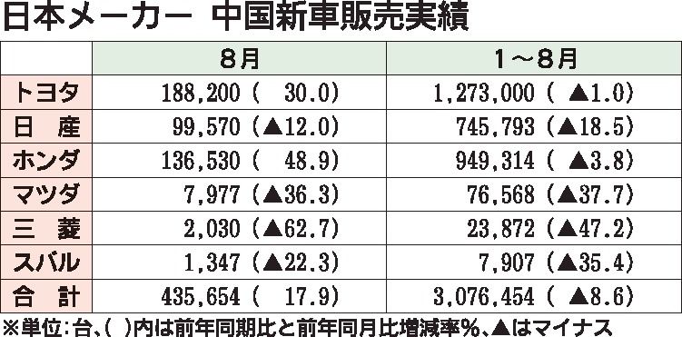 日本の自動車メーカー6社が発表した8月の中国新車販売は、前年同月比17・9%増の43万5654台だった。トヨタ自動車とホンダは中央・地方政府が行う経済対策を追い風に前年実績よりプラスとなったが、残りの4社は半導体不足をはじめとした生産制約...