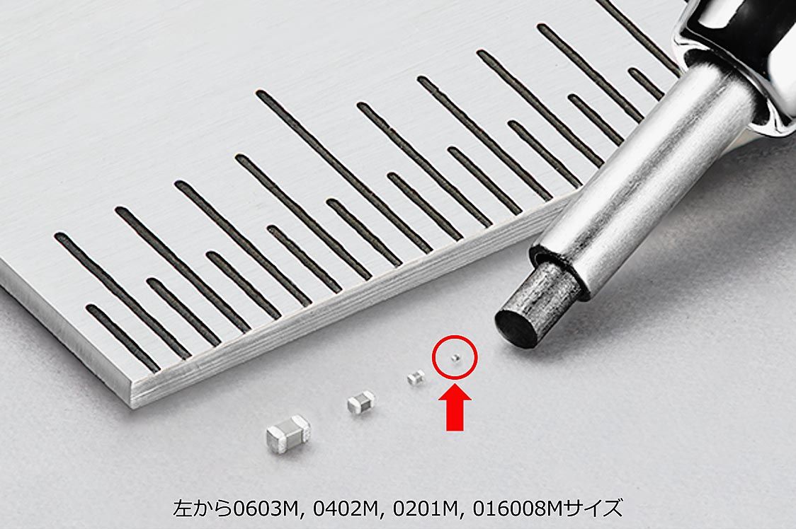 村田製作所は、世界最小サイズの積層セラミックコンデンサー(MLCC)を開発したと発表した。大きさは0.16×0.08㍉㍍の「016008M」サイズで、従来の最小品に比べ約4分の1の体積を実現した。最小サイズのMLCCの刷新は10年ぶりとな...
