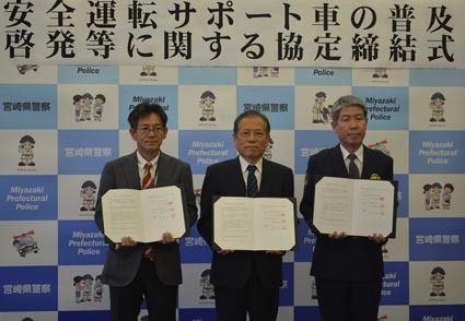 【宮崎】日本自動車販売協会連合会(自販連)宮崎県支部(佐土嶋恒夫支部長)、日本自動車連盟(JAF)宮崎支部(百野正剛支部長)は、高齢者などの交通事故防止を図るため宮崎県警察本部と安全運転サポート車(サポカー)の普及啓発等について協定を締結...