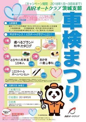 【水戸】損保ジャパン日本興亜代理店の整備事業者で組織しているAIRオートクラブ茨城支部(大泉剛支部長)と同茨城南支部(印出孝男支部長)は2018年1~3月末までの期間、「車検まつり」キャンペーンを実施する。昨年に続き会員の車検、車販への取...