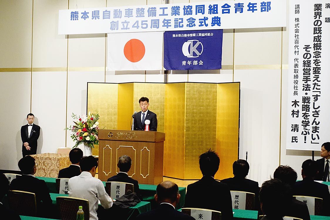 【熊本】熊本県自動車整備工業協同組合(松田講成理事長)の青年部(松田健太郎部長)は熊本市中央区のホテルで、「創立45周年記念式典」を開催した。青年部員と来賓を合わせて100人以上が出席し、節目を祝い、さらなる飛躍を誓った。 式の冒頭、松田...
