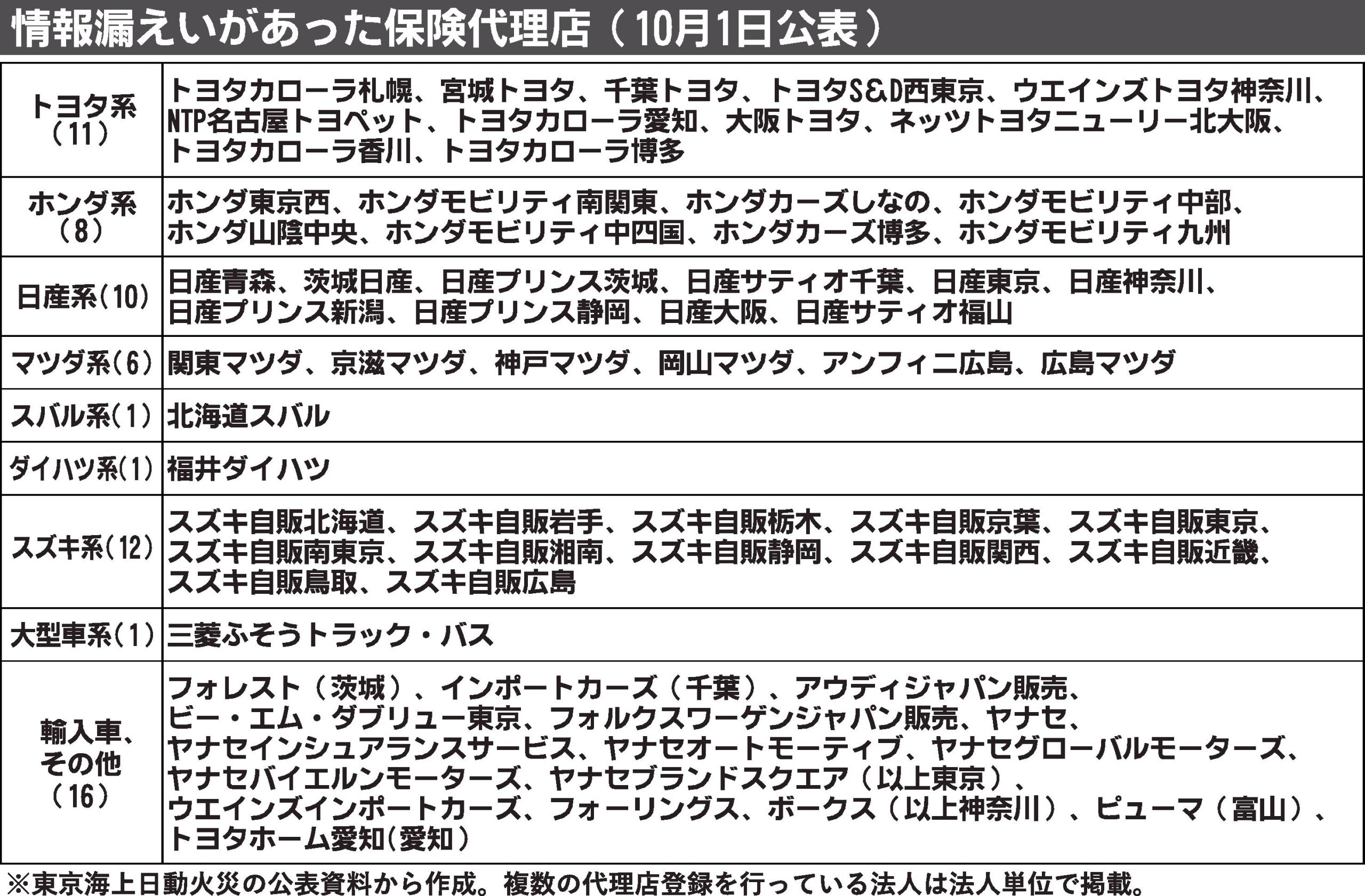 大手損害保険4社による一連の情報漏えい問題で、東京海上日動火災保険は10月1日、漏えいが確認された自動車ディーラーを含む保険代理店のうち、連絡先の分からない顧客がいる代理店66社を公表した。すでに損害保険ジャパン、三井住友海上火災保険、あ...