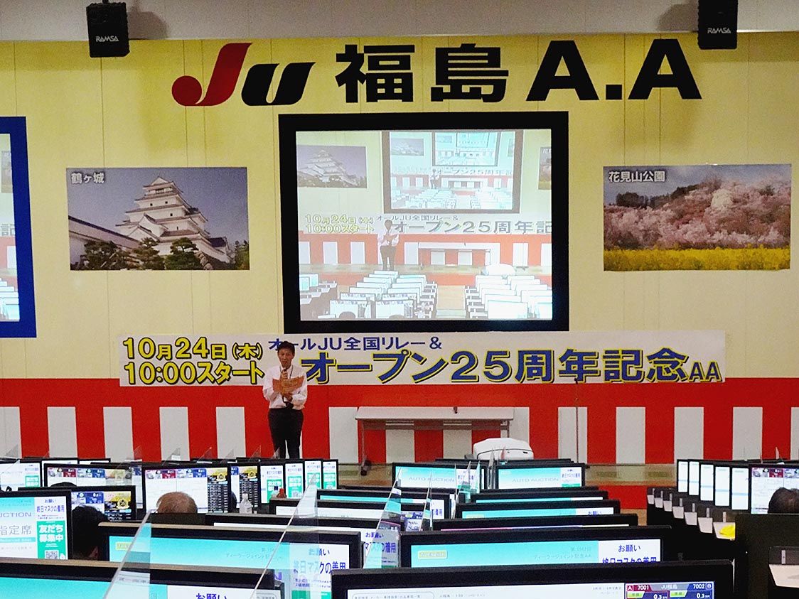 【福島】JU福島(橋本一男理事長)は福島市の常設中古車オークション(AA)会場で「ディーラージョイント記念AA」を開催した。出品台数はディーラーの出品増や月間キャンペーンの最終週効果などから、1495台と目標を大幅に上回った。 目玉のディ...