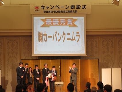 【広島】全日本ロータス同友会広島県支部(二村一弘支部長)は7日、リーガロイヤルホテル広島(広島市中区)で昨年10、11月に行った秋期キャンペーン表彰式を行い、カーバンクニムラ(二村正信社長、広島市安佐南区)が最優秀賞に輝いた。また2、3月...