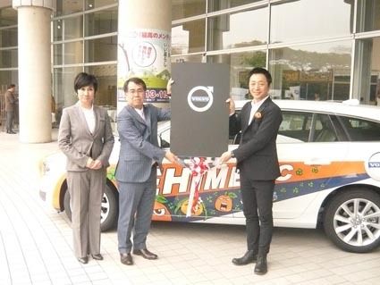 【松山】ボルボ・カーズ松山を運営する伊丹産業カーズ(河原正範社長、神戸市中央区)は日本プロサッカーリーグ2部(J2)チーム、愛媛FC(村上忠社長)にラッピング仕様の「ボルボV60」をモニター車両として提供した。贈呈式は10日、「愛媛輸入車...
