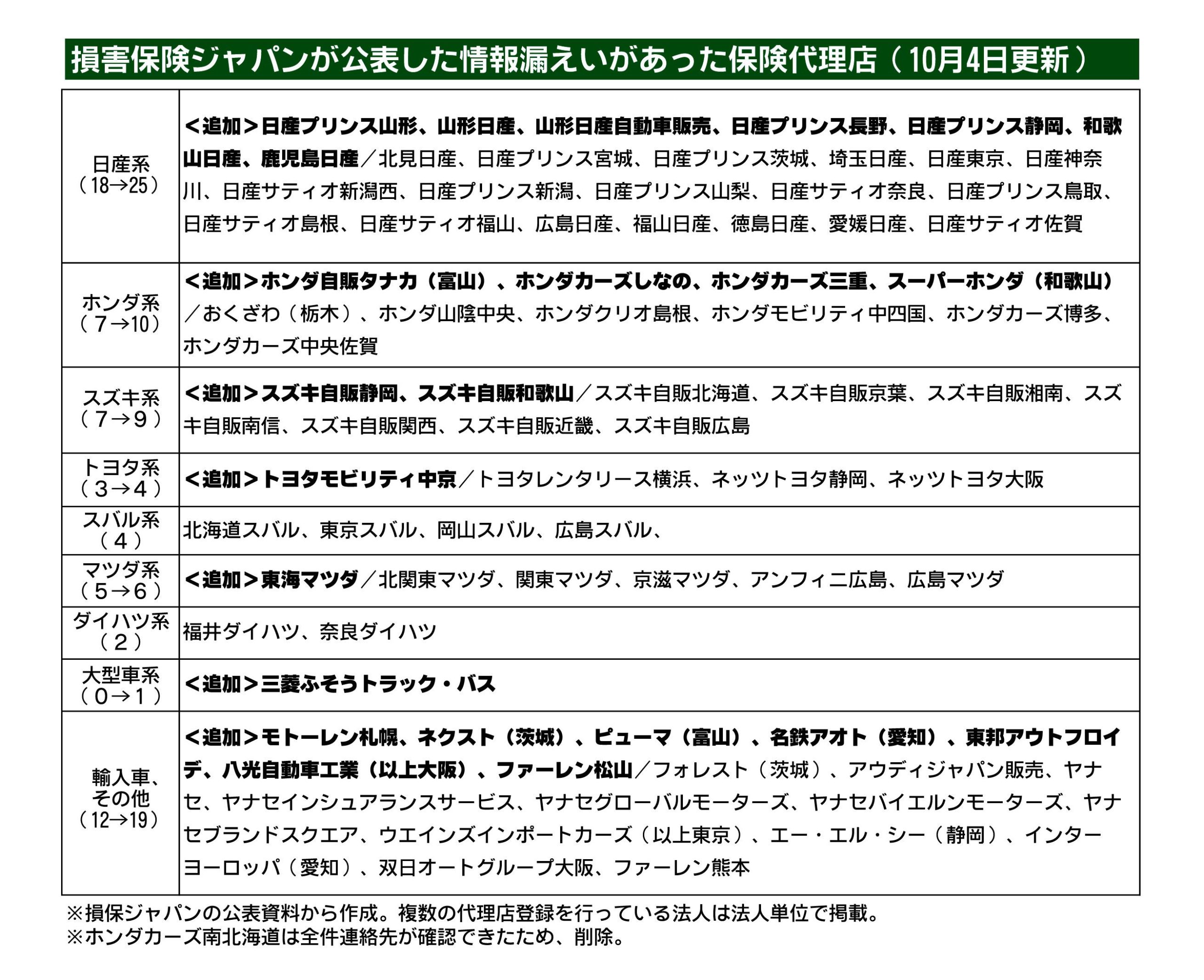 損害保険大手4社による情報漏えい問題で損害保険ジャパンは4日、漏えいが判明した自動車ディーラーを含む保険代理店のうち、連絡先の分からない顧客がいる代理店が新たに23社確認されたと発表した。前回公表(9月19日)では58社だったが、ホンダカ...