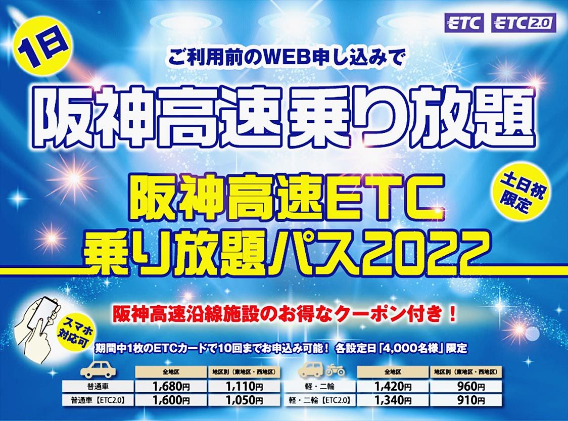阪神高速道路(吉田光市社長、大阪市北区)は、土日祝日限定で通行料金が1日乗り放題になる定額パスの販売を開始した=写真。全地区版の販売価格は、普通車が1680円(消費税込)で、軽自動車・二輪車が1420円(同)。利用可能日は17日~2023...