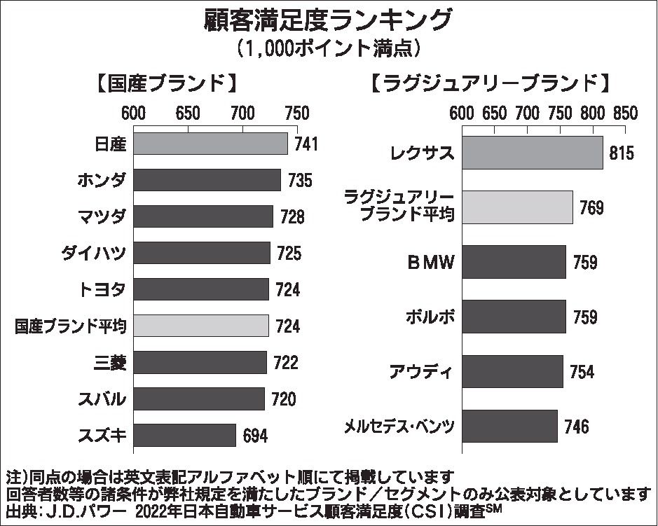 JDパワー「2022年日本自動車サービス顧客満足度」 上級はレクサスがトップ 国産ブランドは日産が首位