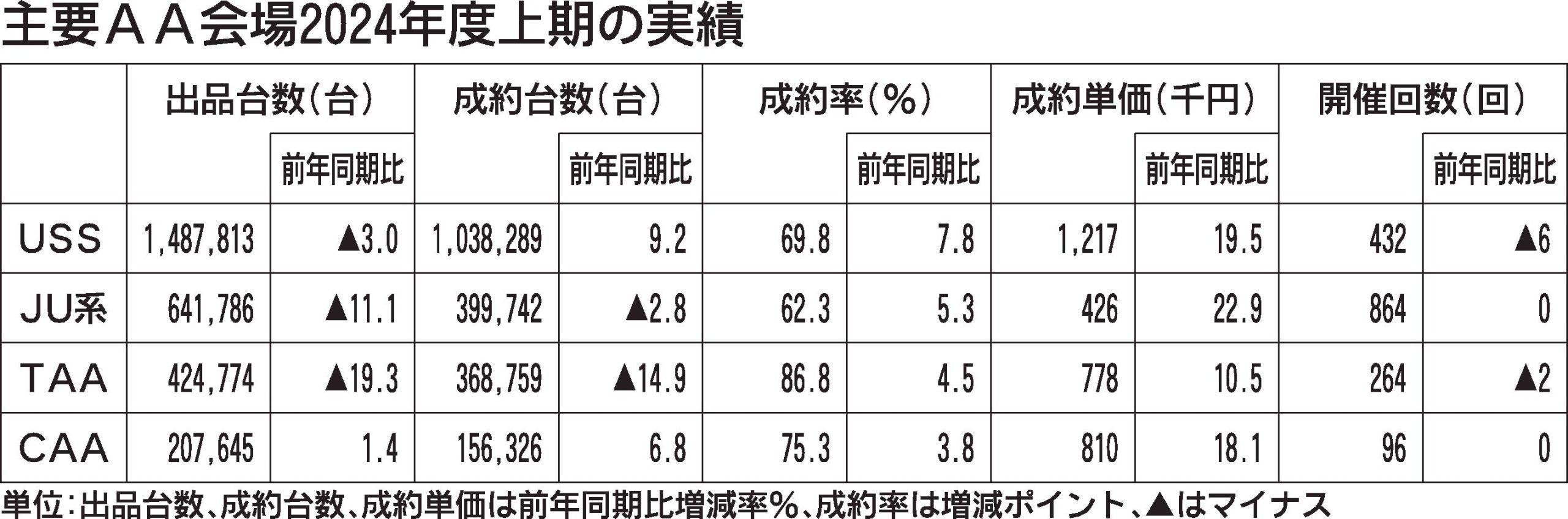 中古車オークション(AA)の相場が高騰している。ユーエス・エス(USS)の2024年度上期(4~9月)の平均成約単価は、前年同期比19.5%増の121万7千円となり、00年度以降で上期として過去最高だったことが分かった。日本中古自動車販売...